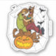 Check out this Halloween graphic of Scooby-Doo holding Shaggy, with flying bats, a spider web, and a jack-o-lantern in the background.