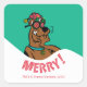 Check out Scooby-Doo in his festive holiday hat and glasses, giggling with laughter and the word "Merry!" written below.
