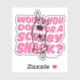 The stick looks amazing. Unfortunately, it would not stick on our suitcase as it was textured. When we found a non-textured (smooth) suitcase, the sticker stuck and looks great. The printing looked awesome.