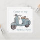 Stand out from the crowd with these professionally designed contemporary birthday invitations featuring a watercolor and ink painting of a scooter.