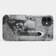 Photo iPhone protection case with a vintage scooter parked in front of a house in a cobblestone street in a city in Italy in stylish black and white.