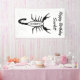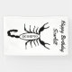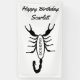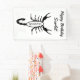 This awesome Birthday banner features a digital art image of a black scorpion with big claws and a large sting on the tail curved above the top of its body, with the word Scorpio in bold black text inside the body of the arachnid. A fun design for people celebrating a Birthday born between October 24 and November 21 under the star sign of Scorpio. There is custom text so you can include a name and message.