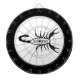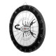This awesome dart board features a digital art image of a black scorpion with big claws and a large sting on the tail curved above the top of its body, with the word Scorpio in bold black text inside the body of the arachnid. A fun design for people celebrating a Birthday born between October 24 and November 21 under the star sign of Scorpio.
