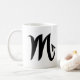Scorpio zodiac symbols, double-sided printing with vertical text in centre, classic white mug. Original design for sun sign Scorpio the Scorpion; various mug styles including commuter mugs, frosted mugs and more. Makes a great gift for yourself or your favourite Scorpio! You can also customise this design to resize or reposition the images, change font size, colour, style or orientation, add or delete image elements, whatever your heart desires. Happy blessings from Happy Wishing Well dot com.