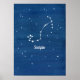 A poster featuring the constellation for Scorpio in the night sky with an indigo watercolor wash background. Fun poster for you or to give to a Scorpio friend. You can find the other star sign constellations on a variety of items in my shop.
