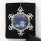 Tree lights will shimmer off this pewter snowflake casting the Scorpio airbrush design with silver typography symbol and Scorpio constellation.
