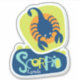 Here's a cute sticker that proudly proclaims your status as a Scorpio! It depicts a navy blue scorpion with stylised text below that says "Scorpio". Your name is in smaller text in white at the bottom. If you prefer, you may easily remove the name by clearing the field. *Clip art used in this design is copyrighted by Encore Software, Inc., which permits use to its licensors. All rights reserved.