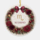 Celebrate the mysterious, powerful spirit of Scorpio with this elegant zodiac Christmas ornament. Featuring a watercolor winter wreath in deep burgundy, plum, and evergreen tones with subtle floral and celestial accents, this design reflects Scorpio’s intensity, beauty, and quiet strength. Set on a warm ivory background with the Scorpio glyph at center, it’s perfect for Christmas trees, garlands, or as a striking astrology gift.