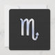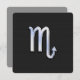 A silver chrome like Scorpio zodiac symbol on a charcoal black snake skin texture print decor. A modern urban racy design for a great custom birthday gift idea.