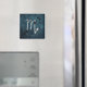 A constellation of black stars float over the astrological symbol of Scorpio the scorpion, surrounded by a silver astro chart frame on a mysterious teal blue backdrop. An unusual gift for someone born under the Water sign of Scorpio - October 23 to November 21.
