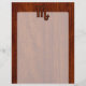 A Scorpio Zodiac Sign applique in a rich brown Mahogany wood grain style decor print background. A classy modern design for a great custom birthday gift idea.