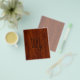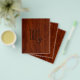 A Scorpio Zodiac Sign applique in a rich brown Mahogany wood grain style print background. A classy modern design for a great custom birthday gift idea.