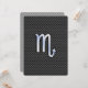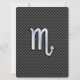 A silver chrome like Scorpio zodiac symbol on a charcoal black carbon fibre texture print decor. A modern urban racy design for a great custom birthday gift idea.