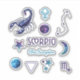 Celebrate the intense and transformative spirit of Scorpio with this beautifully detailed zodiac sticker collection. Featuring celestial artwork of the Scorpion, the Scorpio constellation, zodiac symbol, Water element symbol, and Pluto ruling planet symbol, this design is surrounded by dreamy moons, planets and stars for a magical cosmic feel.