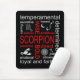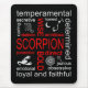 Cool tag cloud design listing some zodiac sign terms with positive and negative Scorpion personality traits.