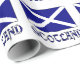 The Scot or Scottish Flag is blue with a white saltire. It is also known as St. Andrew's Cross. Under the flag is the word SCOTLAND in white and blue. Your heritage is shared on this gift wrapping paper.