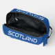Scotland flag personalised toiletry travel bag. Custom blue Dopp Kit with cool design. Personalise with name or monogram optionally. Colours can be changed too.