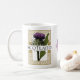A Scottish Thistle in a gold Celtic knots frame surround the word "Scotland" on this pretty mug. The image is on both sides of the mug, while the front has a spot for your monogram and name. Perfect for anyone of Scottish descent, fans of Outlander, or fans of Scotland.