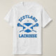 Lacrosse. Flag shield design with crossed sticks. Designs available in both regular and weathered, vintage-style versions. Scotland lacrosse.