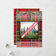 The Scottish Stewart Clan's popular red, green and yellow "Royal Stewart / Stuart" tartan covers the front and back on this Christmas greeting card. On front, you add your favourite family photo of the year (removing the placeholder, natch, and the banner and box). In order for your greetings to be readable, we have pulled translucent filters across the top and bottom of the vertical card. In the top corners are arrangements of silver bells, decorated in red and green of the season. A simple "Merry Christmas" in a bold all-caps black font arches over your Monogram Initial. We've used S in an elaborate black font for Stewart, but you can use S for your clan or change initials to whatever your last name actually is. At the bottom, also on a translucent filter that allows your tartan to peek through is room for a personal greeting on one line and the first names of everyone in your family and/or photo.