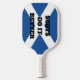 Scots do it better funny pickleball paddle racket. Create personalised sports paddles for player, fan, coach, team, mum, dad, friend, husband, wife, kids etc. Personalise with your own name monogram initials or funny quote. Professional quality game rackets for men, women and children. Background colour can be changed too. Double sided print. Custom trim colour. Cover optional. Flag of Scotland design. Fun Birthday or Christmas present idea.