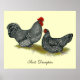 An unusual breed is the Scots Dumpy. These are long bodied chickens with very short legs, reminding one of Japanese bantams.