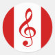 This round sticker sports my official logo. The logo design is based on the Canadian flag with a white background and vertical bars of red on the left and right sides of a circular emblem. In this logo design the red maple leaf normally found on the Canadian flag has been replaced with a red treble clef.