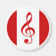 This round magnet sports the official logo of recording artist, Scott Ruhs. The design is based on the Canadian flag with a white background and vertical bars of red on the left and right sides of a circular emblem. In this logo design the red maple leaf normally found on the Canadian flag has been replaced with a red treble clef.