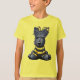 100% cotton so perfect for summer, It is a nicely designed t-shirt, the fabric is soft and the seams finished well, the body of the t shirt has no side seams. I bought a medium size for my two grandsons, aged 9 and 8 it will be slightly big on them but I would rather that than too small