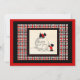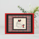 Scottie dogs - Scottish Terriers, on top of a big snowball with Happy New Year on it. Scottie Dog New Years open house invitation. Cute plaid border surrounds the image.