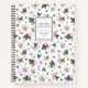 Scottish Six Spot Burnet moth butterfly and floral pattern notebook in pink, white, teal and red. Beautiful modern design with flying insects collecting nectar from thistles and scabious flowers typical of this country. Wildlife and flora of Scotland illustration. You can personalise the journal with a name, subtitle and date. The font is in a modern style. Be inspired by this lovely front page to write down your thoughts and ideas for any of your projects.