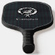 Stylish pickleball paddle with Scottish Campbell Clan crest badge and customisable text on Black Watch / Campbell tartan background