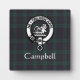Scottish Campbell Clan crest badge and customisable text on Black Watch / Campbell tartan background