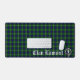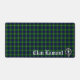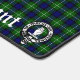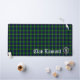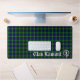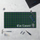 Stylish desk mat features Scottish Clan Lamont Crest Badge and text on tartan background.