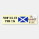 A bumper sticker for supporters of Scottish independence. The slogan reads 'Not OK in the UK. End London Rule.' There's a graphic of the Scottish flag and End London Rule is in the Union Jack flag pattern. The design is inspired by the 2014 referendum when Scots will vote on the nation's future. You can change the colour background to suit by using the customise button.