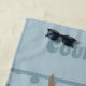 Create a personalised touch for your beach trip when you add a name to this beach towel. It features a cute illustration of a Scottish Highland Cow with its tongue out set against a pale blue polka dot background. Your name or other text appears above the graphic in coordinating blue lettering.