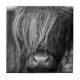 Beautiful black and white image of a stunning scottish Highland Cattle cow in Scotland