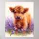 Scottish Highland Cow Calf Purple Wildflowers Poster