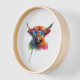 Scottish Highland Cow in Sunglasses Colourful Wate Clock