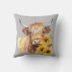 Scottish Highland Cow with Sunflowers. Editable Cushion