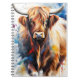 notebook with a creative design of a Scottish highland cow on the cover, painted in a watercolor style.