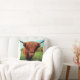 This pillow has a picture of a cool Highlander cow pictured on it.