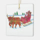 Scottish Santa with Highland Cow pulling sleigh Ceramic Ornament