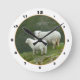 WALL CLOCK: Beautiful white, soft and cuddly lamb, with her mother in the rocky green background of British countryside. England, Wales and especially Scotland is white spotted with numerous sheep herds. Though, compared to the New Zealand, where almost 40.000.000 (yes, that's 40 million) sheep are grazing and only 4.000.000 (4 million) people live - there is more cows than sheep on the British islands. Travel/Adventure series Discovering Britain. Original Photography/Art/Design by work4dream.