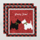Cute Christmas Scottish Terriers with holiday collars of holly wreaths invite your guests to a festive party. Dots and checks in red, black and white with cute little Scotties on front and back, one white and one black. Customise it with your own party details for a unique trendy one-of-a-kind holiday party or office party invitation.