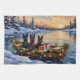 Bring spirited, distinctive charm to your holiday season with this adorable Black Scottish Terrier Christmas design! This magical scene features three cute, alert Black Scottish Terriers (Scotties) with their classic silhouette, sitting attentively in a cozy wooden boat, gently floating on a serene snowy lake at sunset. The boat is beautifully adorned with glowing Christmas string lights and fragrant pine garlands, while the dogs wear festive scarves. They are surrounded by colorful wrapped presents and cheerful holly branches. Soft snowflakes gently fall, and the shimmering reflection of the lights on the water creates a truly magical winter holiday atmosphere. This design is a perfect Christmas gift for any Scottish Terrier owner, dog lover, or admirer of festive and unique terrier art, capturing the serene joy of the season.
