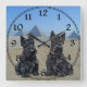 Keeping time for you, just another service of the versatile Scottie in your life! In addition to clocks, created from our original paintings, these Scotty Dog images are available in seasonal designs on clothing, novelty and gift items of all sorts! Please take a look through our Scottish Terrier Shop (and more! We have Shops for many dog breeds with links posted in the Shop). Buy for yourself or as a special treat for your friends!
