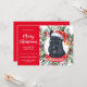 This lovely Scottish Terrier dog with greenery is sure to bring you holiday cheer! This drawing includes a sweet Scottie with a Santa hat, surrounded by holiday greenery, berries, and pinecones. You can fully personalise this design by changing the greeting on the banner, and the greeting, names, and pet name on the left side. This is a stylish, yet inexpensive, flat card design can be customised, and it's perfect for Scottie lovers, Scottish Terrier fans, dog lovers, and pet lovers.