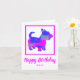 Scottish Terrier dog silhouette in crazy hot pink and blue bright modern abstract pattern. Funny birthday message inside can be changed to anything you want. Personalize card with name on the front.