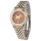 The watch is very nice, the picture is great and the watch looks like quality. The only problem I am having with it is that it is a little too large, and I also can't figure out how to open the clasp. No directions came with it. Very good. The printing is perfect and the watch keeps good time.
